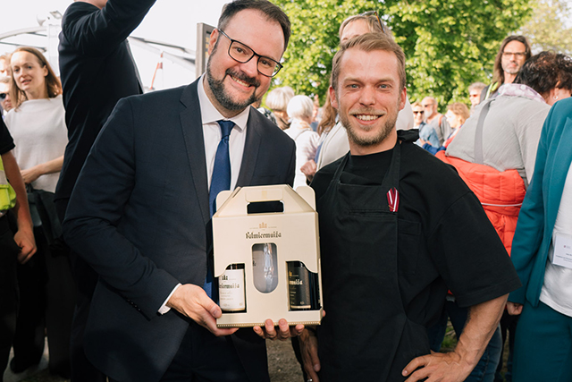 Minister Kaspars Briskens und Atis Everss - Promoter für Lettlands berühmte Bierbrauerei- "Valmiermuiza"